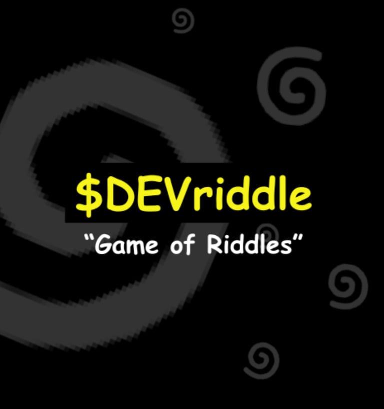 $DEVriddle is a community driven meme like coin on the Solana blockchain. Holders can participate in "$DEVriddle - Game of Riddles" on live stream, as well as whitelist spots for the main NFT collection can be claimed for the top 302 holders of $DEVriddle. (whitelist snapshot TBD... NFT Drop TBD, we're on Phase 1...) There is ZERO guarantees of rewards, profits, or financial gains otherwise! It’s a community driven meme coin...